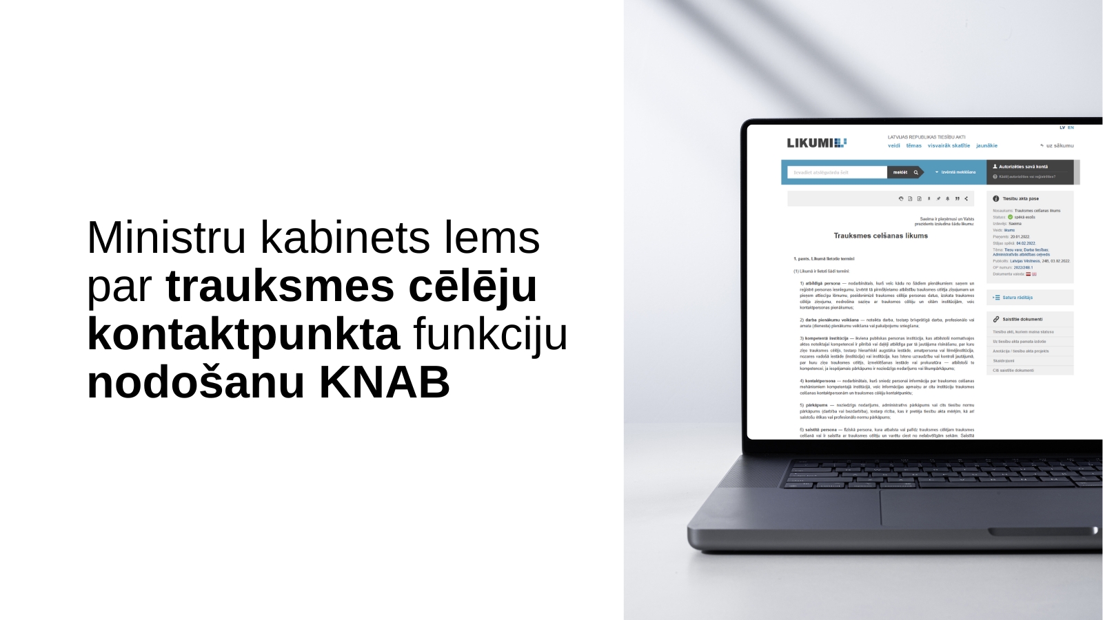 No 2026. gada trauksmes cēlēju kontaktpunktu pārcels uz KNAB